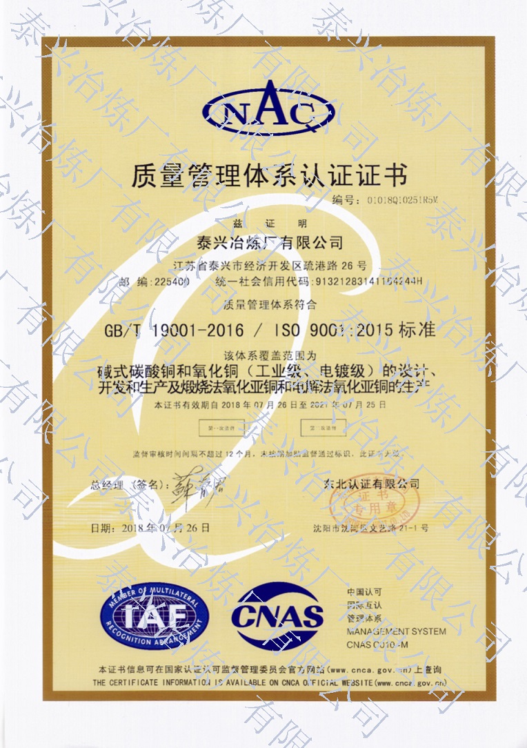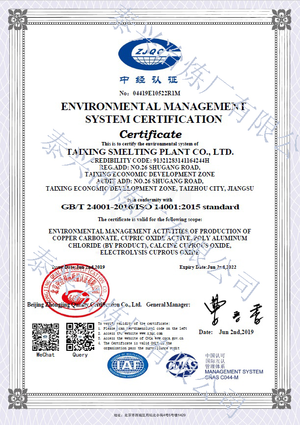 是我國《工業(yè)氧化亞銅》、《工業(yè)堿式碳酸銅》、《工業(yè)活性氧化銅》行業(yè)標準的起草單位